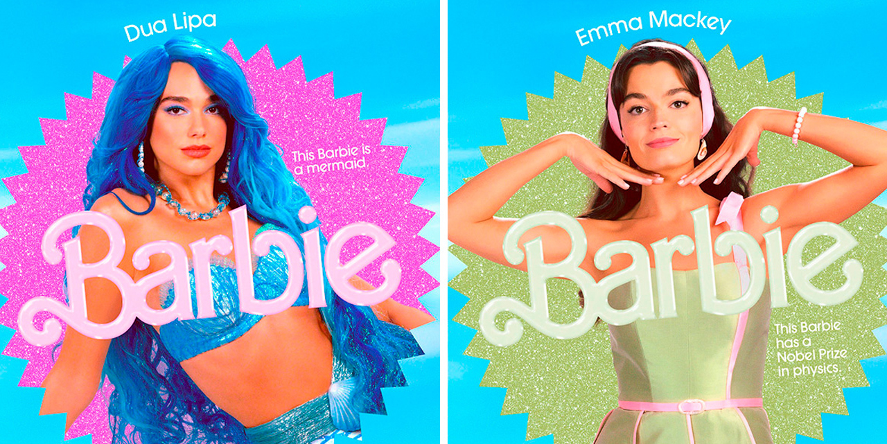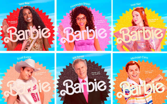 Los carteles lanzados hoy también brindan un primer vistazo a Helen Mirren como narradora, Will Ferrell como director ejecutivo de Mattel y Michael Cera como Allan.