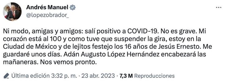 El presidente Andrés Manuel López Obrador “goza de cabal salud” luego de que dio positivo a coronavirus por tercera ocasión.