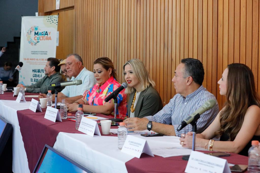 Culiacán, Sinaloa.- Concebido como una estrategia regional para incrementar la participación turística de los pueblos mágicos, a través de la promoción de sus tradiciones y el fomento de actividades culturales, esta mañana, la Secretaria de Turismo, Estrella Palacios Domínguez, presentó el Programa Magia y Cultura, que se realizará entre el 18 de mayo y el 6 de agosto, contemplando actividades para el desarrollo de nuevos talentos y creación de nuevos productos turísticos, a través de un enfoque sostenible en coordinación con el INAH y el Instituto Sinaloense de Cultura, que organizará un festival cultural en cada pueblo mágico.