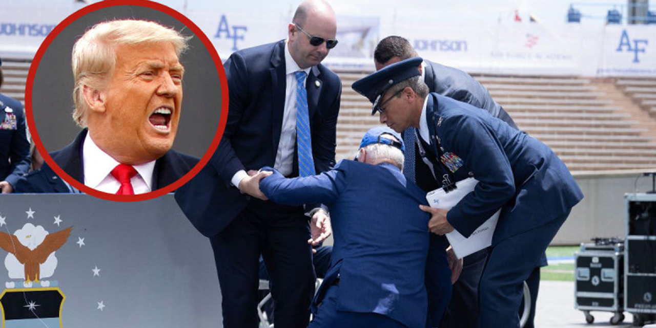 El expresidente de Estados Unidos, Donald Trump. Parecía compadecerse de Joe Biden tras haberse caído en la ceremonia de graduación de la Academia de la Fuerza Aérea del jueves en Colorado, recordando su paso inestable por una rampa “resbaladiza” en la ceremonia de graduación de West Point en 2020.