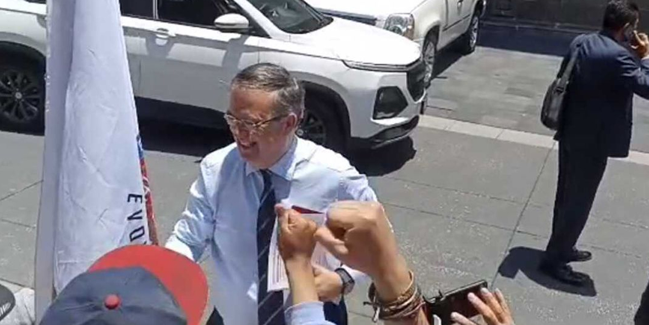 Minutos antes de que el aspirante a candidato llegara a Palacio Nacional, simpatizantes expresaron su apoyo con gritos: “¡Marcelo, amigo, Ixtapaluca está contigo”, además que ondeaban banderas con la leyenda “Marcelo Sí”.
