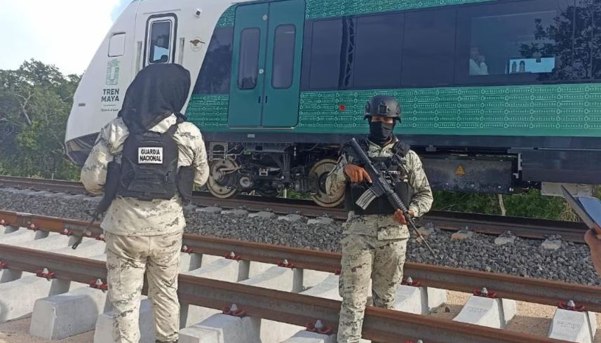 “No pueden grabar. Le están dando mantenimiento al vagón”, dijo un militar con el rostro cubierto. “Ya en cinco minutos ya arranca”, dijo otro soldado.