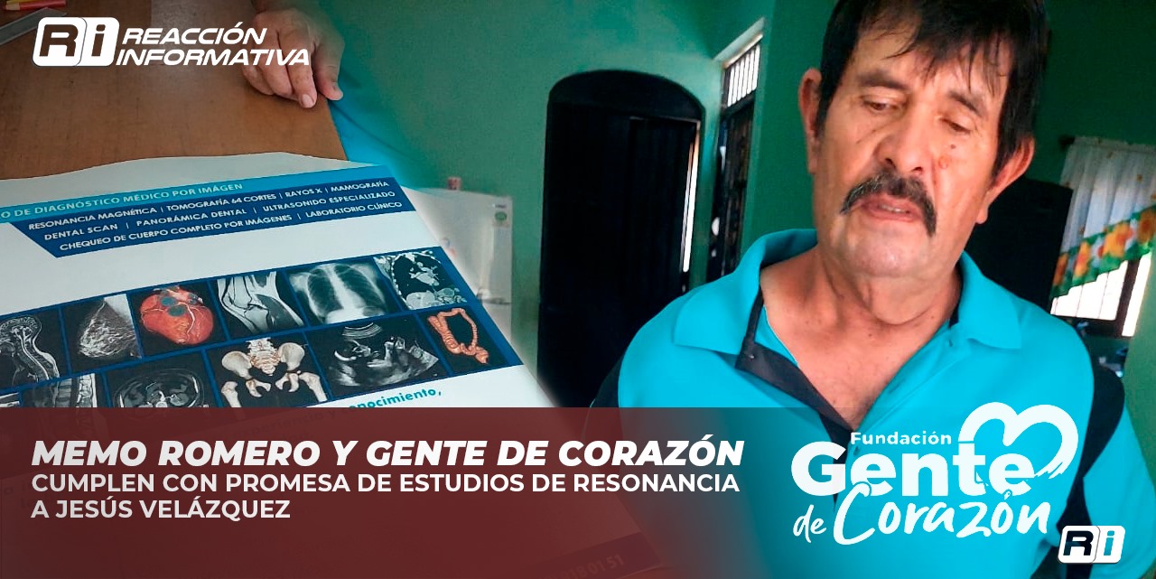 Jesús Velázquez agradeció a Memo y Gente de Corazón tras haber recibido los estudios de resonancia simple de columna lumbar que tanto necesitaba.