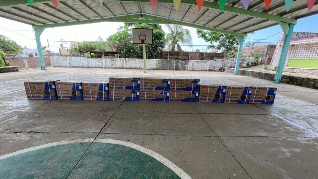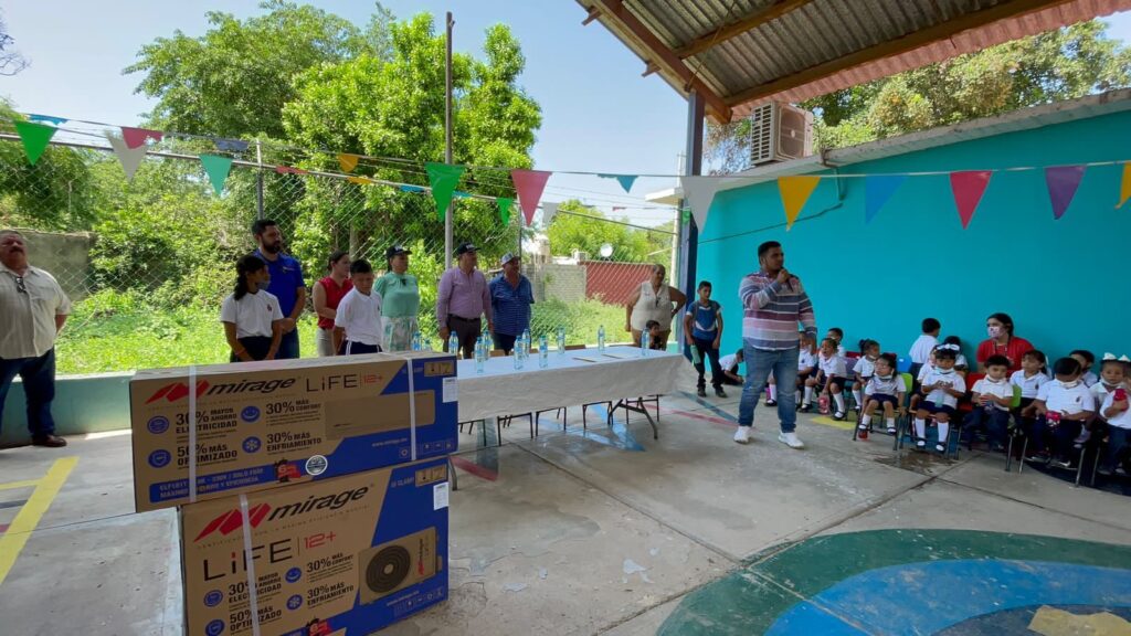 Asimismo, se han entregado aires acondicionados en el jardín de niños Santa Teresa, en el kínder y primaria de El Walamo, así como en la comunidad de El Recreo.