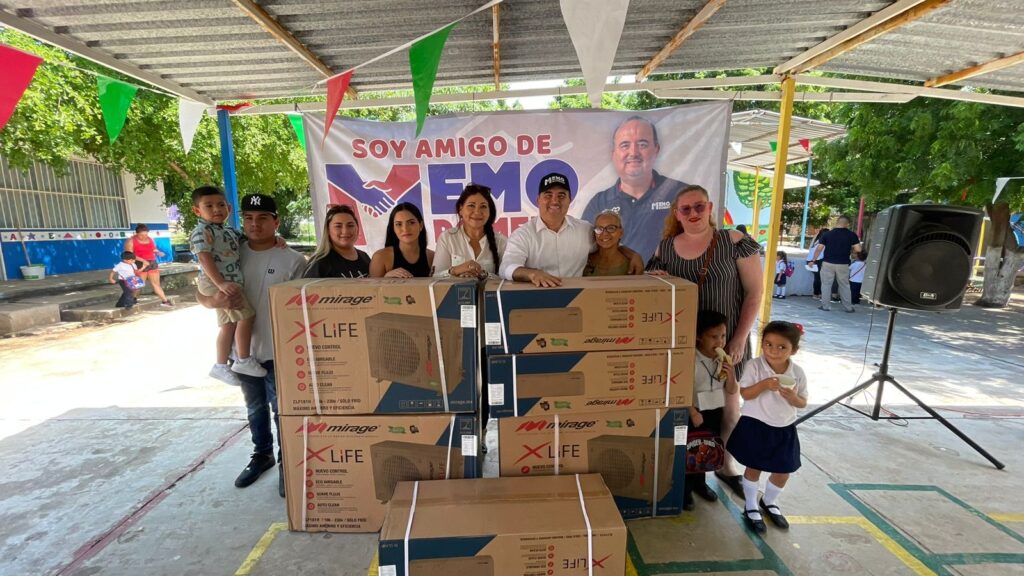 Memo Romero detalló que en el mencionado kinder se entregaron 5 equipos y se dio mantenimiento a los mini splits que ya tenían, en tanto que en la Primaria Niños Héroes , de El Habal, se donaron 6 equipos.