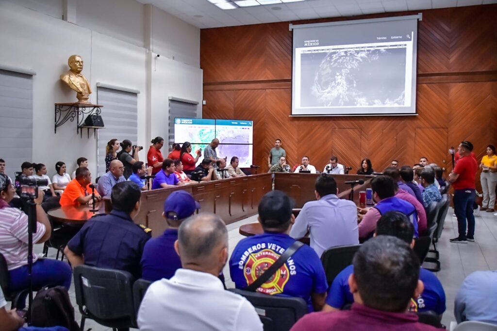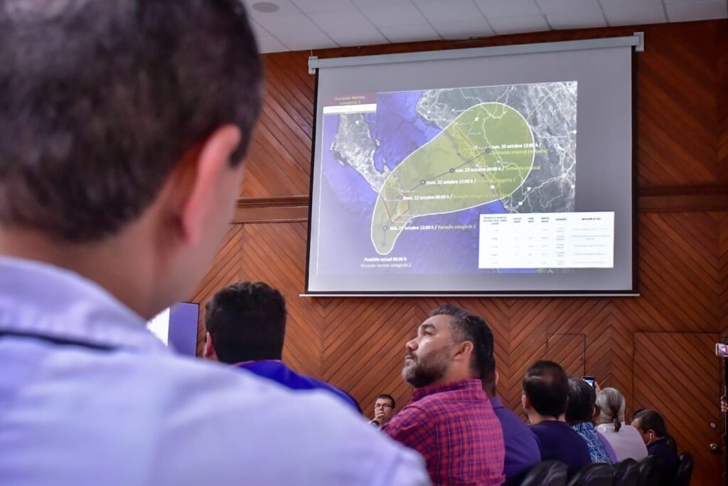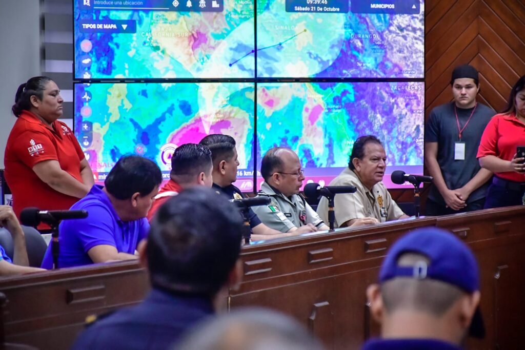 Mazatlán, Sinaloa, 21 de octubre de 2023.- Ante la amenaza que representa el Huracán “Norma” para Mazatlán, el Gobierno Municipal activará a partir de este sábado las primeras medidas de acción y prevención para actuar de manera inmediata en caso de registrar algún problema por lluvias y vientos, informó el Alcalde, Edgar González, y el Coordinador Municipal de Protección Civil, Eloy Ruiz Gastélum, en el marco la de la Sesión de Comité Local de Atención a Emergencias.