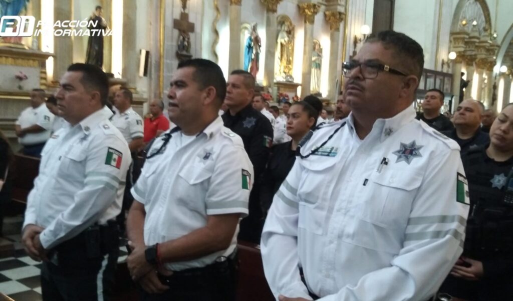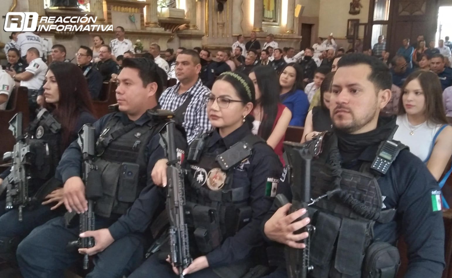 Culiacán, Sin. (Reacción Informativa).- Elementos de la Secretaría de Seguridad Pública y Tránsito Municipal de Culiacán celebraron con una misa de acción de gracias el Día del Policía en la Catedral Basílica de Nuestra Señora del Rosario.