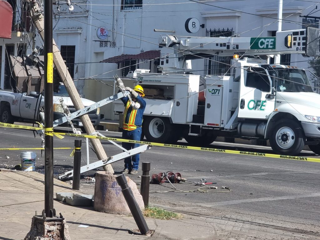 Personal de la Comisión Federal de Electricidad ya trabaja en la zona para restablecer la luz, retirar los cables y los postes, y restablecer a la brevedad posible el suministro eléctrico.