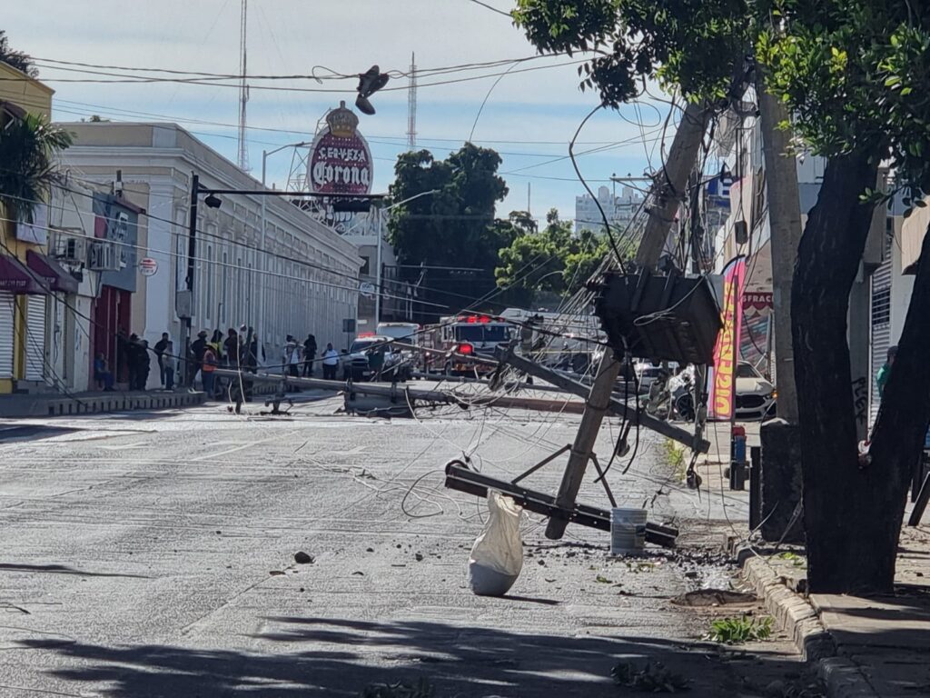 Culiacán, Sin. (Reacción Informativa).- Una persona que conducía a exceso de velocidad se estrelló contra varios postes de la Comisión Federal de Electricidad ubicados en el primer cuadro de la capital sinaloense, provocando que gran parte del centro se quedara sin luz.