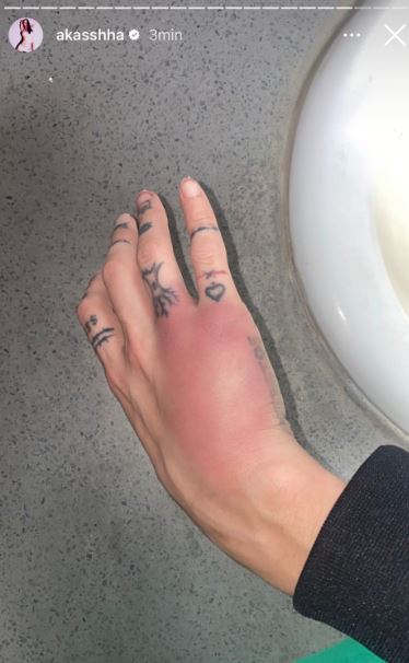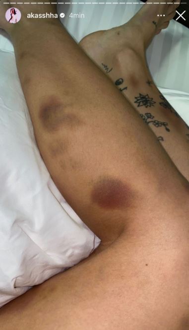 Además de las supuestas pruebas de infidelidad, la novia de Aleman, Akasha, compartió en sus historias un conjunto de fotografías en las que muestra golpes que recibió en las manos, brazos y piernas, quedando con las extremidades llenas de moretones e inflamación.