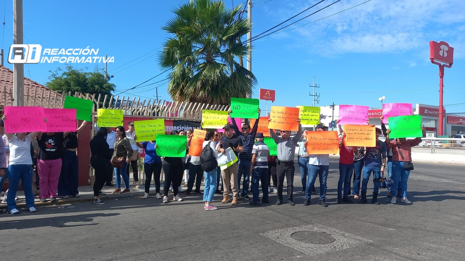 Culiacán, Sin (Reaccion Informativa).-Con pancartas con leyendas coml “Pedro Flores, no eres mi rector”, “No al cacicazgo”, “Una farsa la elección del nuevo rector de la UAdeO”, “No a la imposición y al cacicazgo en la UAdeO” decenas de maestros y administrativos de la Universidad Autónoma de Occidente se plantaron nuevamente a las afueras del Campus Culiacán en contra de la designación de Pedro Flores como rectornde esta casa de estudios.