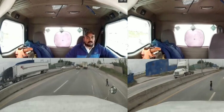 Con una destreza y calma sorprendentes, el trailero logró detener su vehículo de gran tamaño sin causar accidentes a su alrededor. Acto seguido, bajó de su cabina y, arriesgando su propia vida, detuvo el tráfico con gestos firmes, creando un escudo humano alrededor del niño.