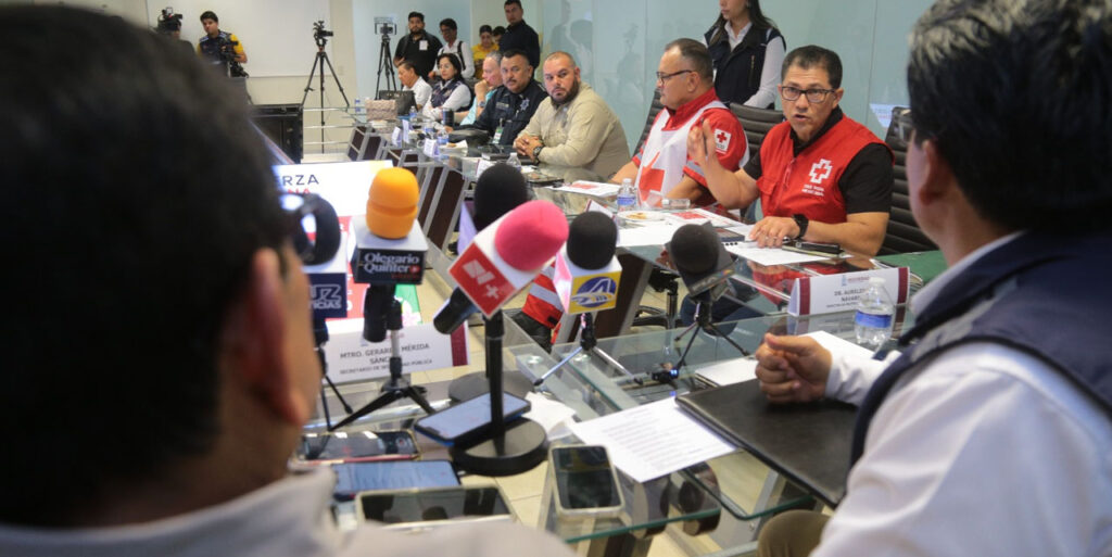 Durante la conferencia de prensa, también estuvo presente el subsecretario de Seguridad, Prevención y Reinserción Social, Leoncio Pedro García Alatorre, el representante de la Secretaría de Marina, Cap. Antonio Caballero, Marco Antonio Cortés, titular de C4i, Jorge Julián Chávez Murillo, presidente del patronato de Bomberos, Alan Francisco Rangel Torrecillas, coordinador de Socorros de Cruz Roja estatal, Sergio Leyva López, secretario de Seguridad Pública y Tránsito de Culiacán y el Comisario Rodolfo Castañeda Beltrán director de seguridad y tránsito municipal de Navolato.