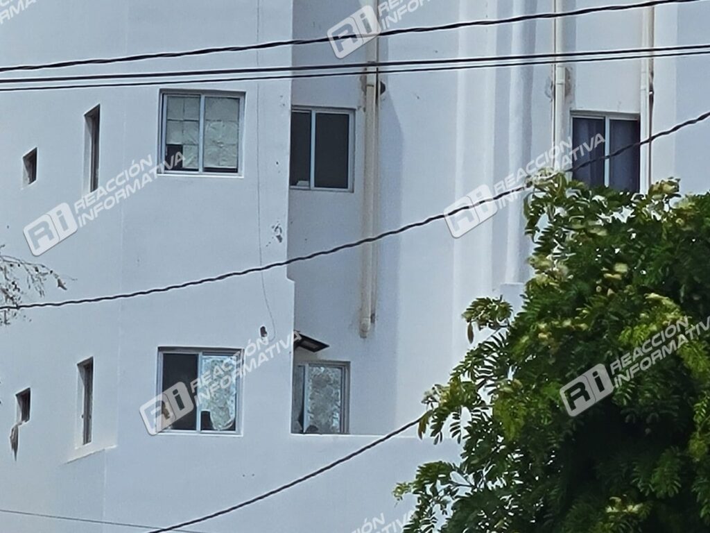 Durante un recorrido realizado por Reacción Informativa en el lugar de los hechos donde tras una balacera perdiera la vida un elemento de Guardia Nacional y otro más resultó herido, se pudo observar los impacto de balas en la pared de unos departamentos que se encuentran por uno los accesos que dan al malecón, así como en los generadores y tomas de agua que se encuentran en una gasolinera.