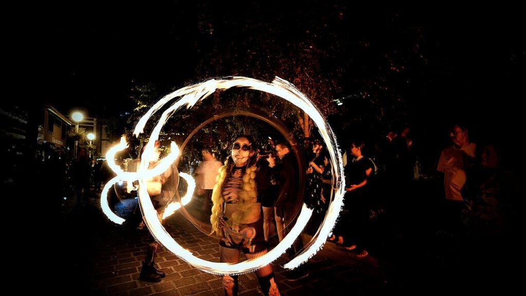 Artistas urbanos que danzan al ritmo de fuego, juegos pirotécnicos y una batucada conformada por percusionistas exaltarán el ánimo de quienes se sumen a la fiesta andante que recorrerá las calles del Centro Histórico en compañía de una imponente y mítica catrina.