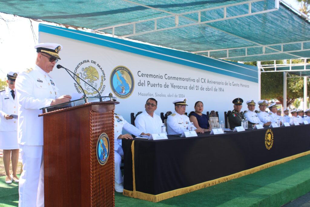 Mazatlán, Sinaloa. – La Secretaría de Marina a través de la Octava Región Naval, con sede en Mazatlán, Sinaloa, informa que hoy se llevó a cabo la Ceremonia Conmemorativa del 110 Aniversario de la Gesta Heroica del 21 de abril de 1914, en el puerto de Veracruz.