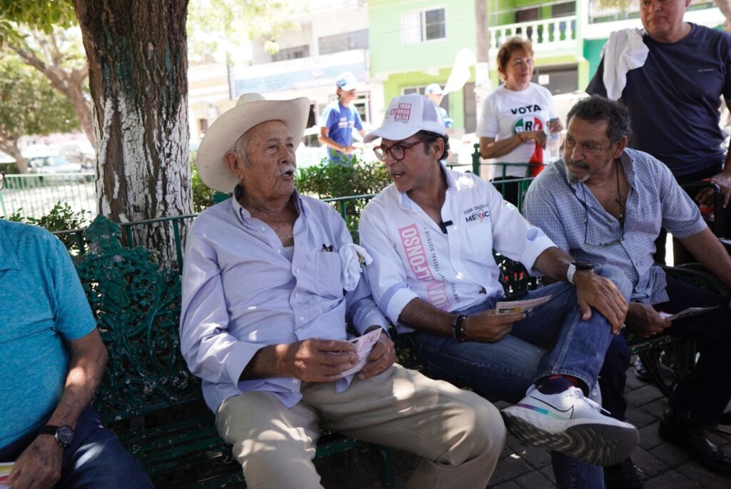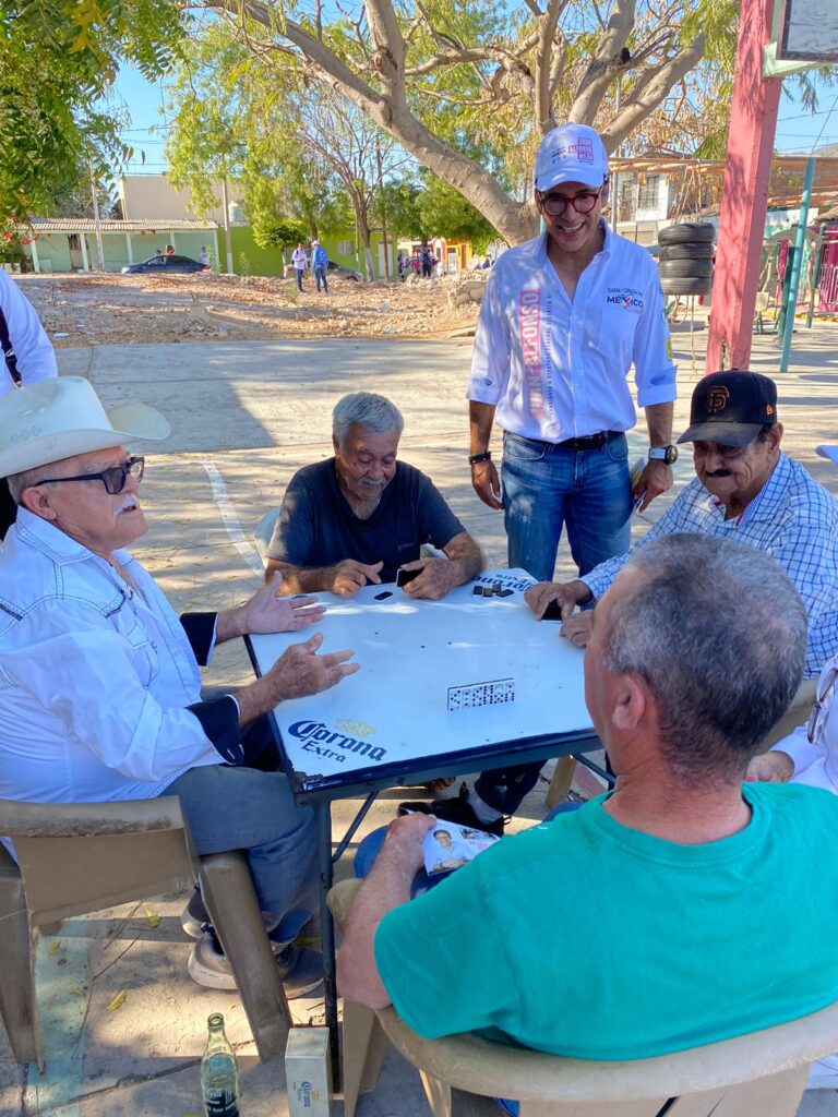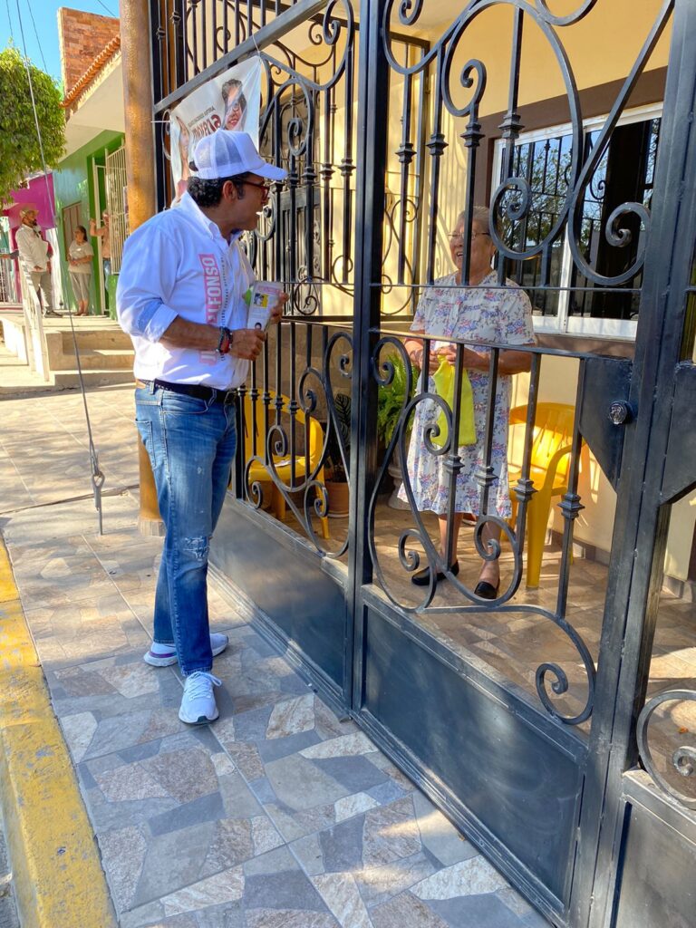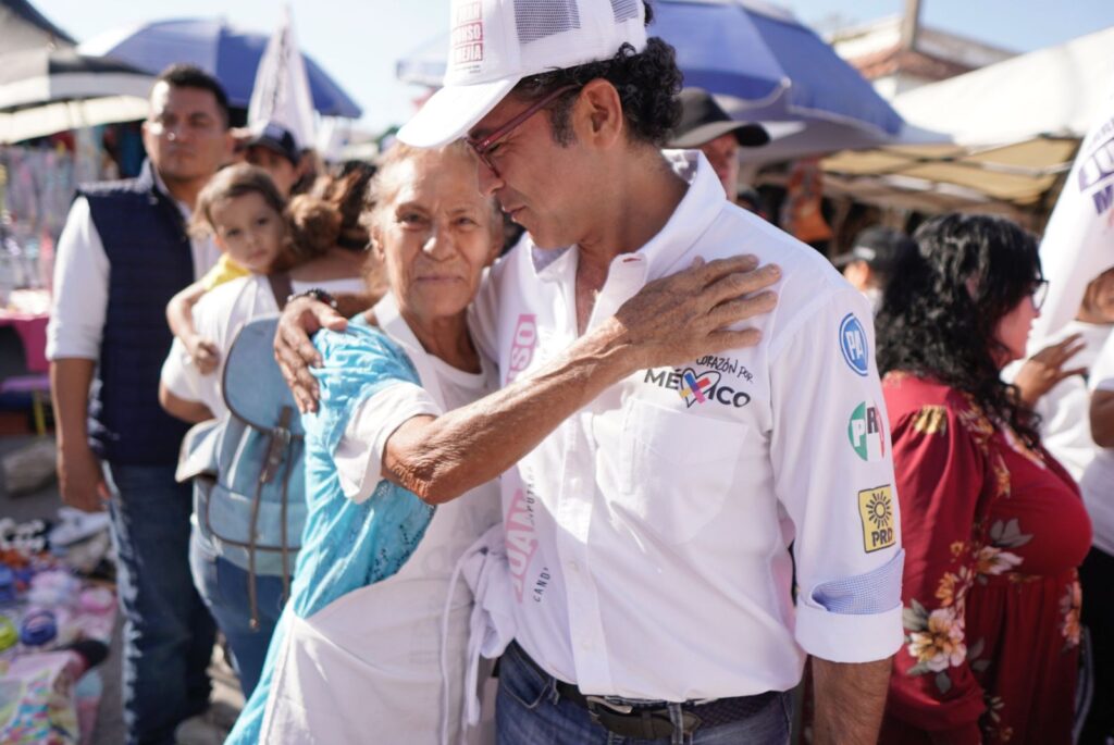 El Roble, Sinaloa. – Cerca de mil quinientos mazatlecos logró saludar Juan Alfonso Mejía, candidato de la coalición “Fuerza y Corazón por México” este domingo al recorrer el tianguis de la colonia Juárez, el mercado municipal Cuauhtémoc de Villa Unión y la sindicatura de El Roble; en una extenuante pero significativa jornada.