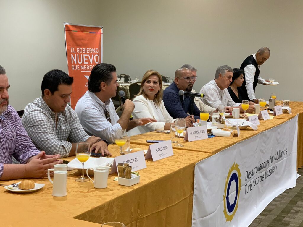 Mazatlán, Sin.- La candidata a la Presidencia Municipal de Mazatlán por el Partido Movimiento Ciudadano (MC), My-Lai Quintero Beltrán, se reunió el día de hoy con empresarios inmobiliarios turísticos de Mazatlán, con quienes hizo el compromiso de hacer gobierno con ellos.