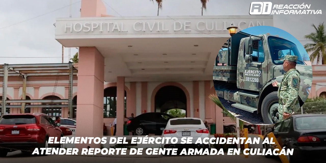Culiacán, Sin (Reacción Informativa).- El pasado viernes alrededor de las 20:00 horas, elementos del Ejército se vieron involucrados en un accidente de tránsito tipo choque mientras se dirigían para atender un reporte de gente armada en el Hospital Civil de Culiacán.