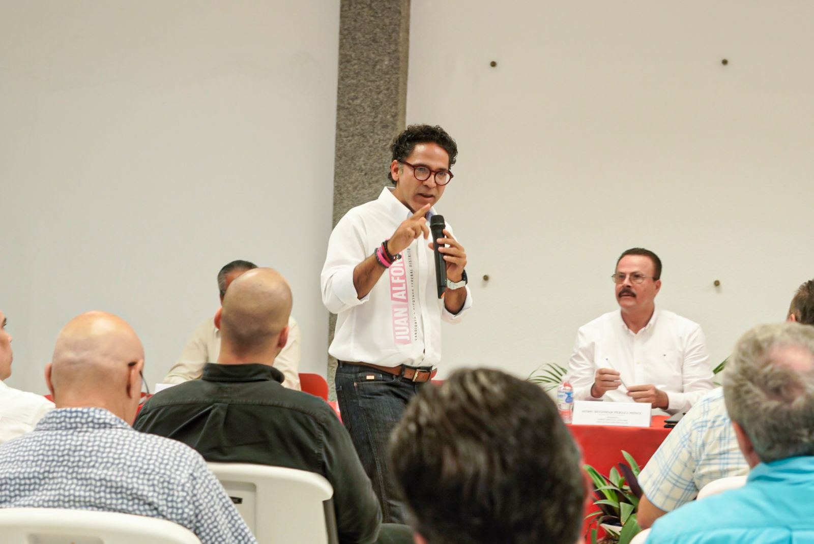 Mazatlán, Sinaloa.- Al comparecer ante dos importantes grupos empresariales del sur del estado, el candidato de la coalición “Fuerza y Corazón por México” a la diputación federal por el Distrito Uno, Juan Alfonso Mejía, pidió a constructores y representantes del sector patronal, no salir a votar por partidos o candidatos, sino a votar por ellos mismos como una forma de defender a los sectores productivos que son la base económica de Sinaloa.