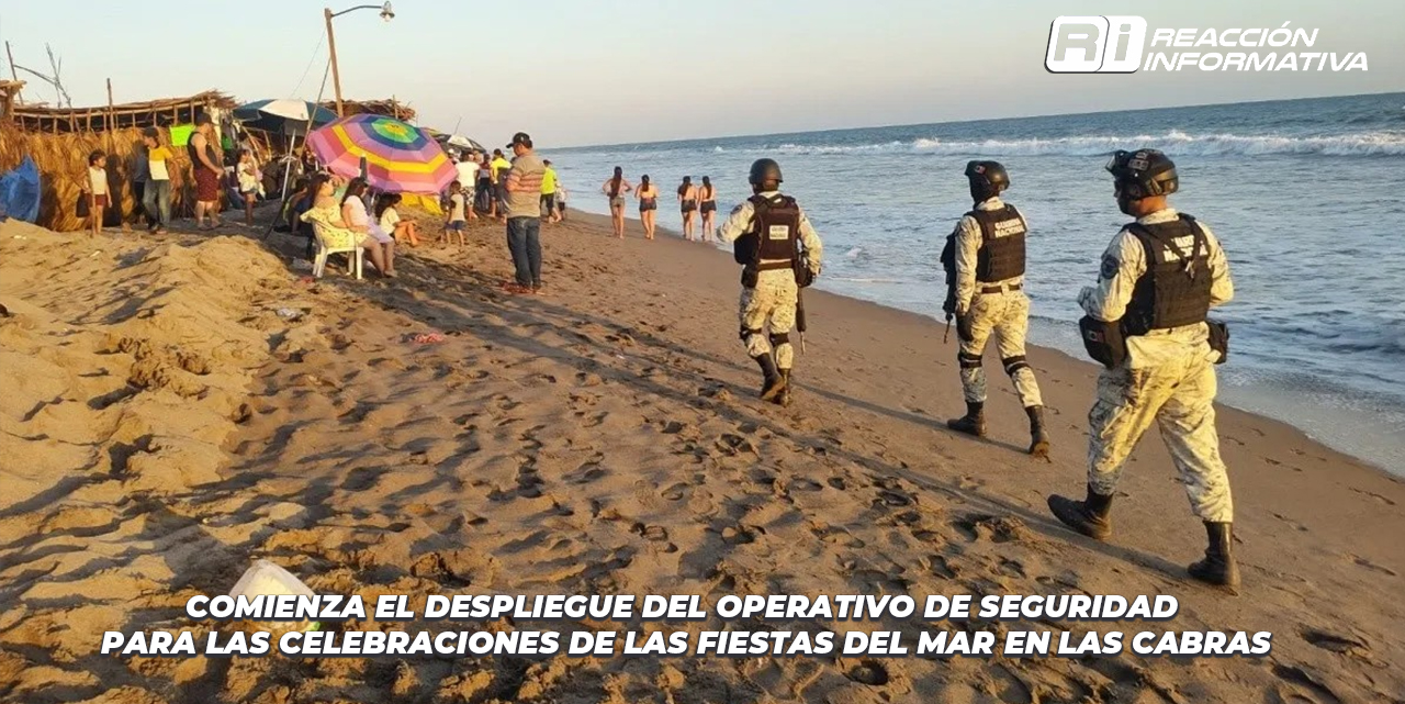 Escuinapa, Sin (Reacción Informativa).- Desde este jueves, ha sido activado el operativo de seguridad destinado a garantizar la protección de los residentes locales y visitantes que participarán en las Fiestas del Mar de Las Cabras, evento que se espera atraiga alrededor de 60 mil personas.