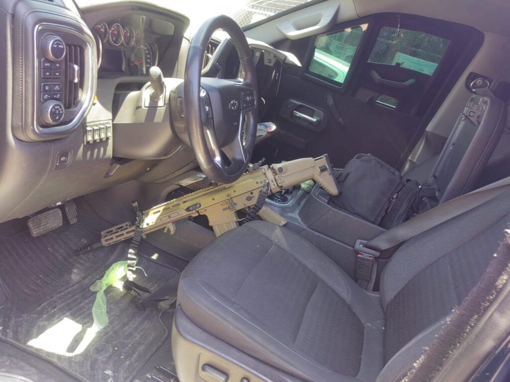 Según el informe, tras una llamada anónima al 911 de la presencia de personas armadas en ese sector, elementos del Ejército Mexicano, Guardia Nacional y de Policía Estatal Preventiva (PEP) llegaron al lugar donde pudieron asegurar dos vehículos, uno blindado, seis rifles, equipo táctico y cocaína, sin embargo, no se obtuvo detención de personas ya que éstas lograron darse a la fuga.