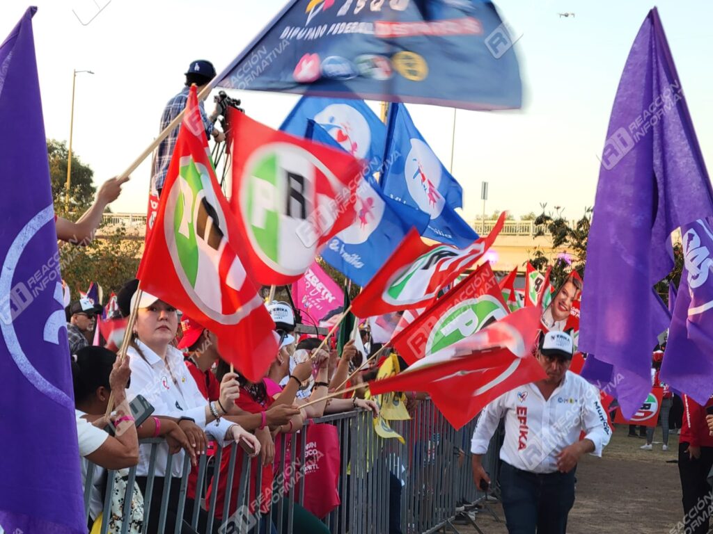 La gran fiesta inició desde las 5:00 de la tarde, donde sin importar el intenso calor miles de simpatizantes y militantes del PRI, PAN, PRD y PAS tomaron el mejor lugar para escuchar el mensaje de quien busca ser la primera alcaldesa para poner a Culiacán en “Otro Nivel”.