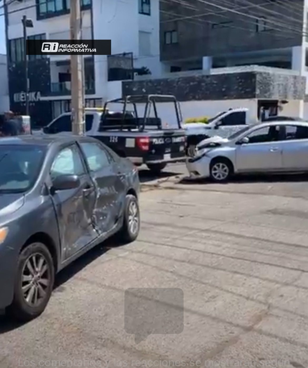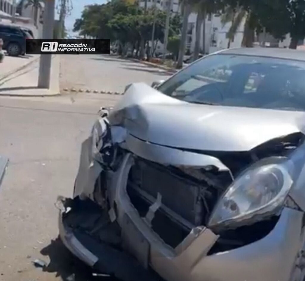 Mazatlán, Sin (Reacción Informativa).- La tarde de este miércoles se registró un fuerte choque entre dos vehículos tipo sedán, se presume que el conductor del Toyota gris no cedió el paso al Nissan plata en la intersección de Lola Beltrán y Rio Baluarte, lo que concluyó en una fuerte colisión entre ambos vehículos.