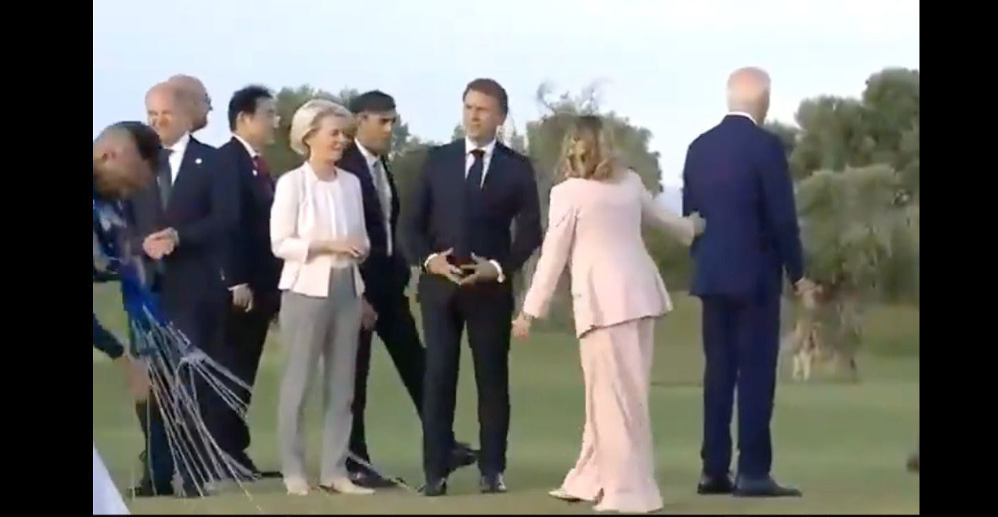Biden, de 81 años y el presidente de más edad de la historia de Estados Unidos, se queda ahí con los brazos colgando y escuchando atentamente. Un momento cotidiano para quienes lo siguen habitualmente, pero que en el G7, donde cada gesto es analizado al detalle, se convierte en tema de conversación.