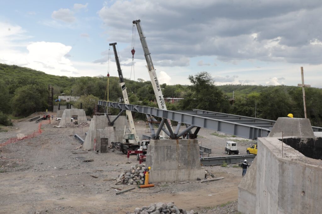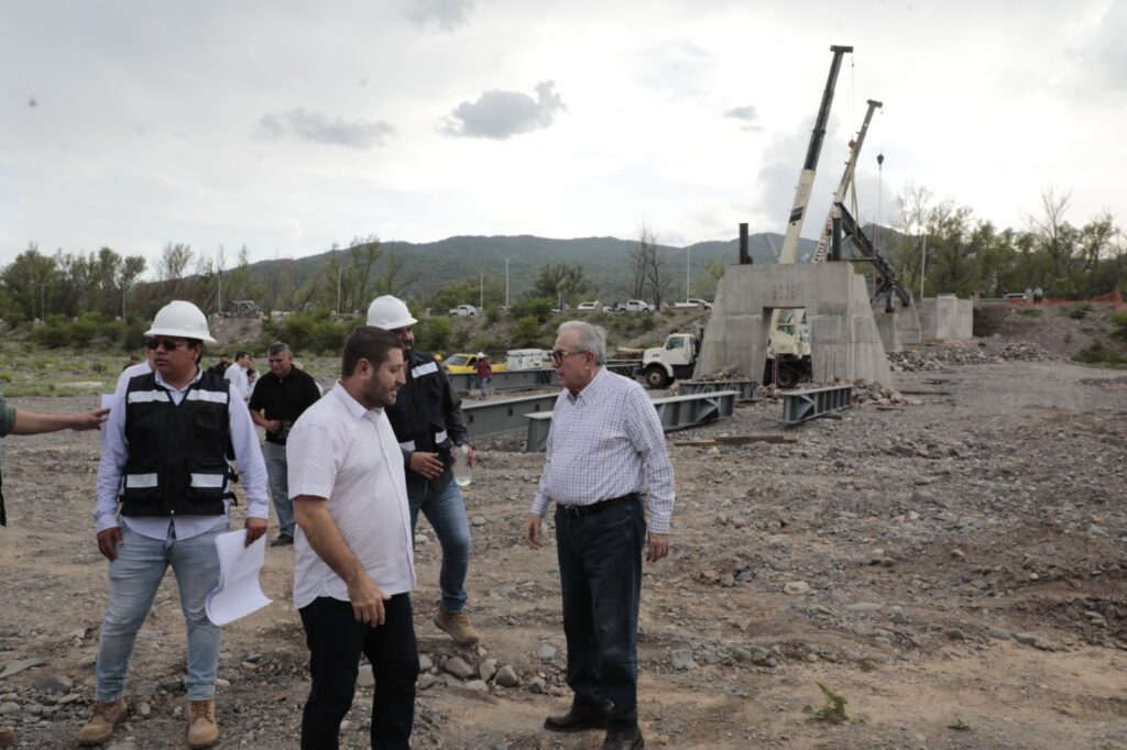 En la cabecera municipal, el mandatario supervisó la construcción del puente bimodal sobre el malecón de Badiraguato, que conectará el centro histórico con la comunidad La Banda del Río, prevista a inaugurarse en septiembre.