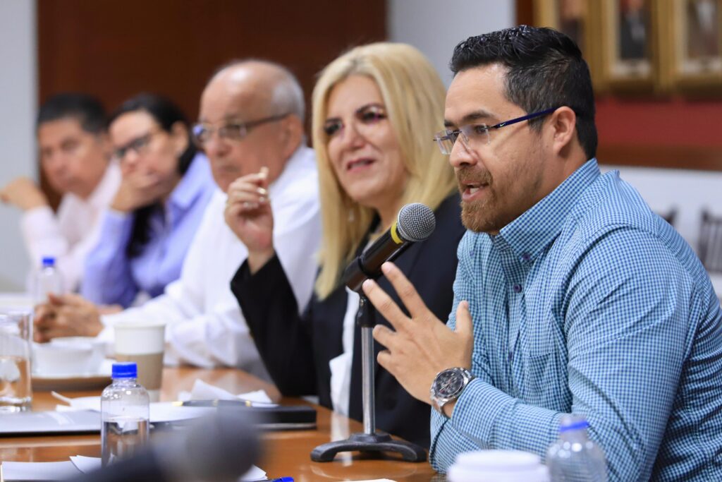 La reunión estuvo moderada por el subsecretario de Planeación, Inversión y Financiamiento de la Secretaría de Administración y Finanzas, David Moreno Lizárraga, quien dio la palabra a todos los miembros del gabinete, quienes intervinieron de acuerdo al eje en el que les correspondió, siendo el primero de ellos el eje: “Gobierno Democrático Promotor de Paz, Seguridad, Ética y Eficiencia”, en el que participaron el encargado del Despacho de la Secretaría General de Gobierno, Rodolfo Jiménez López; el secretario de Seguridad Pública, Gerardo Mérida Sánchez; el secretario de Administración y Finanzas, Joaquín Landeros Güicho; la secretaria de Transparencia y Rendición de Cuentas, María Guadalupe Ramírez Zepeda; y el coordinador de Desarrollo Tecnológico y Proyectos Especiales, Rodolfo Monreal Ávila.