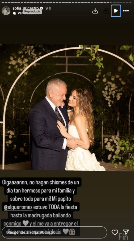 La actriz compartió en su cuenta de Instagram que decidió que su madre la entregara en el altar durante su boba civil y su padre será quien le de su brazo para llevarla en la boda por la iglesia, por lo que ambos tendrán una participación importante en estos días que Sofía dijo han sido los más especiales de su vida.