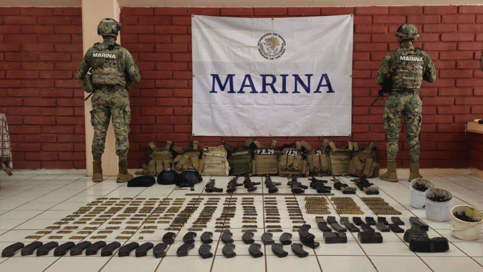 Marina asegura armas, vehículos y municiones en Villa Juárez Navolato