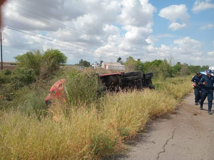 Guasave, Sinaloa (RI Noticias). – Un tráiler marca Kenworth color rojo, modelo 2001 que transportaba pescado, volcó este viernes mientras circulaba por la carretera México 15 en el entronque a la sindicatura de La Brecha.