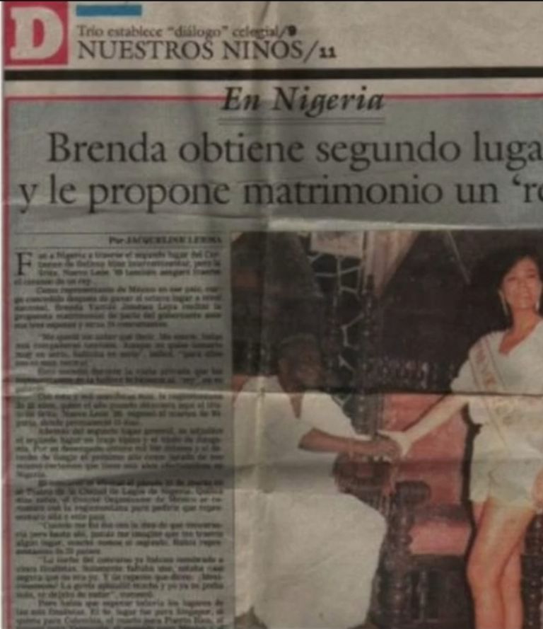 La cuenta encargada de presentar las pruebas de en TikTok fue chisme_chismevivo, donde compartieron algunas portadas de periódicos y fotos donde se deja ver a la Señorita Nuevo León en 1989 bien acompañada del rey de Nigeria. Se tiene que recordar que el integrante de la familia real era mucho mayor que ella y la quería como una de sus esposas, por lo que no procedió a más esa relación.