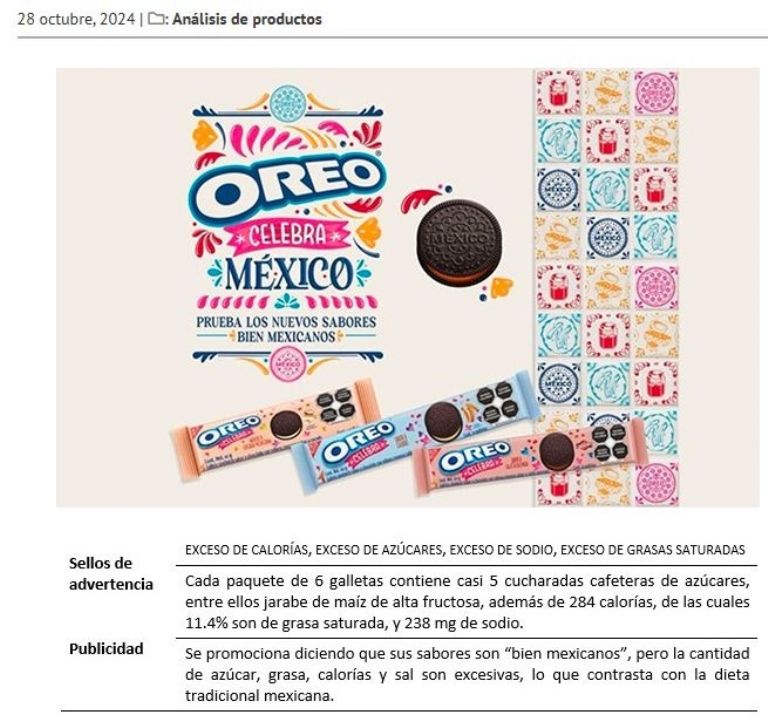 De acuerdo con la información difundida por El Poder del Consumidor, se emitió una alerta de consumo en torno a las galletas Oreo Celebra México debido a que contiene exceso de calorías, de azúcares, sodio y de grasas saturadas, lo cual, podría detonar distintas enfermedades y trastornos metabólicos como el síndrome metabolito hiperuricemia, hipercolesterolemia, hipertigliceridemia, obesidad, tipo diabetes 2, presión alta, enfermedades del corazón, entre otras.