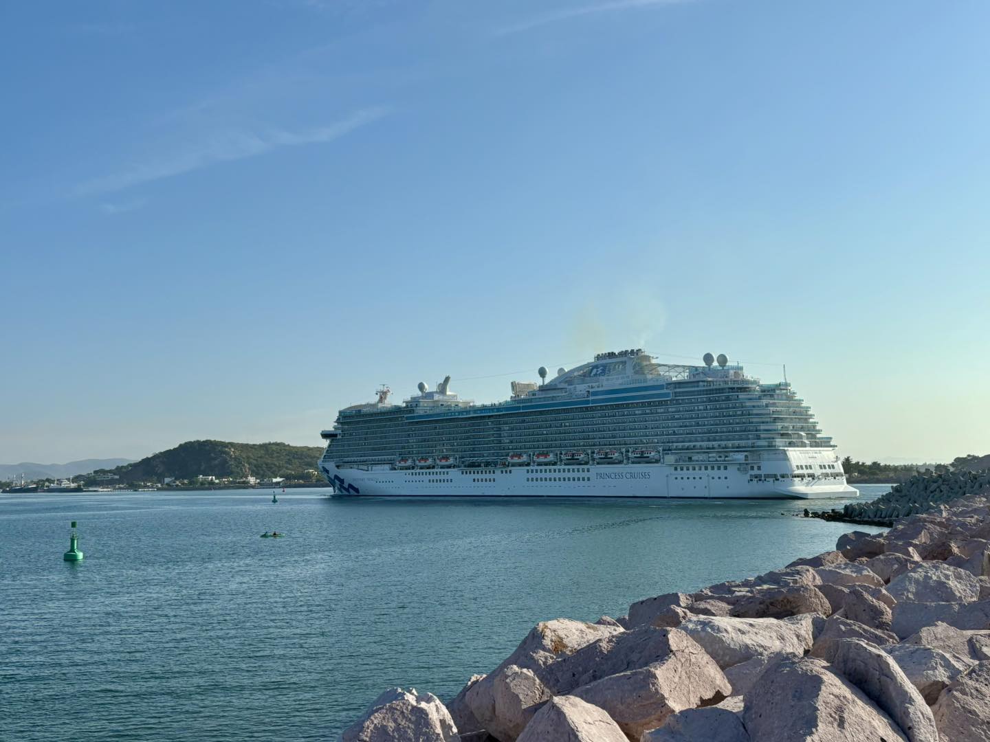 Mazatlán, Sin (RI Noticias).- Este martes por la mañana, el crucero Discovery Princess llegó a Mazatlán, atracando a las 08:45 horas, procedente de Los Cabos. La embarcación trae a bordo a 3 mil 706 pasajeros y mil 351 tripulantes, quienes disfrutarán de las atracciones y destinos turísticos de la ciudad durante su breve estadía.
