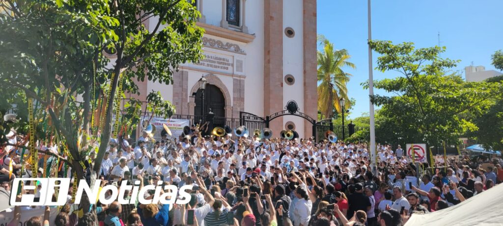 Fue al pie de la Catedral que cerca de 300 músicos de banda hicieron vibrar a los asistentes al interpretar al unísono “El Sinaloenses” “Tecateando”, “La cuichi” entre otras mientras los culiacaneses esperaban la venta de aguachile preparado con más de 1 tonelada de camarón.