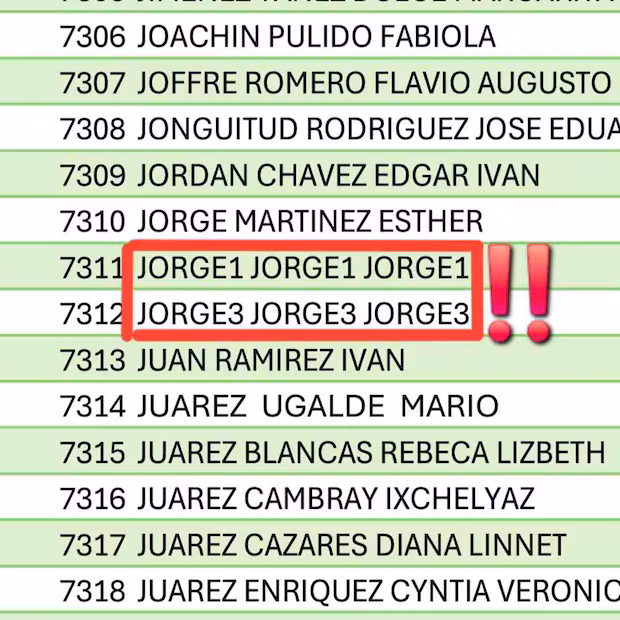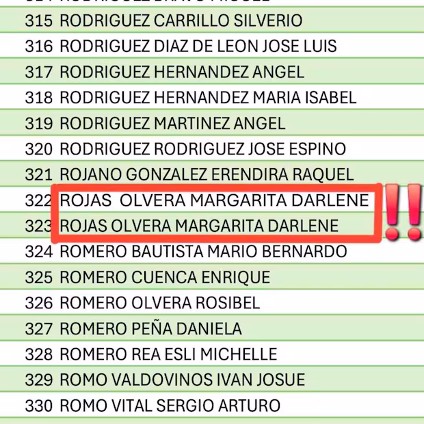 El Comité detalló que se trata de entradas por parte del área de informática para realizar pruebas a la base de datos, las cuales no fueron eliminadas al publicar la lista. Además, aseguró que pasó lo mismo con los nombres duplicados.