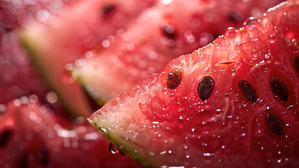 Sandía: según información de la revista el Poder del Consumidor la pulpa de la sandía es de color rojo, debido a que contiene licopeno, el cual es antioxidante y es rica en vitamina A, B, C, y fuente de minerales como el potasio y magnesio.