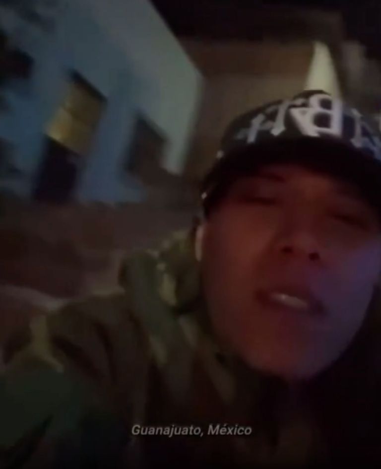El video que fue publicado en las plataformas X e Instagram muestra al cantante acompañado de otras personas en el barrio de Santa Fe, en la capital del estado, mientras escucha música norteña. El rapero porta una pistola en la mano izquierda y realiza disparos para después gritar: “Simón estoy loco, arriba la Santa (Muerte) perros ya saben qué onda. ¡Feliz Navidad! Ya saben que rollo”.