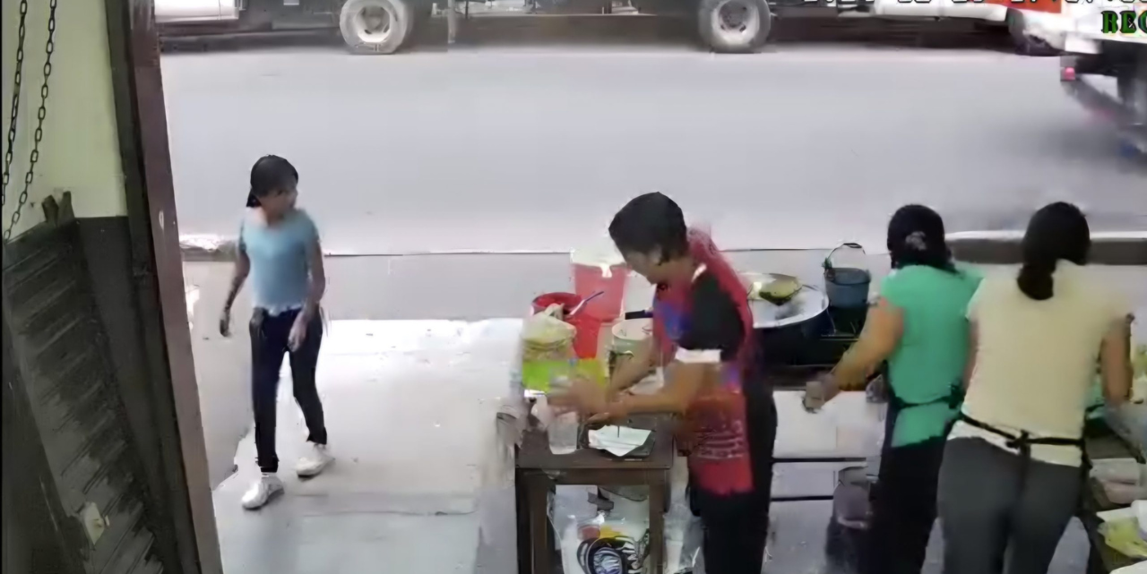 De acuerdo con la información compartida hasta el momento, la mujer que arrojó el cazo se encontraba molesta debido a un desacuerdo por la cuenta.