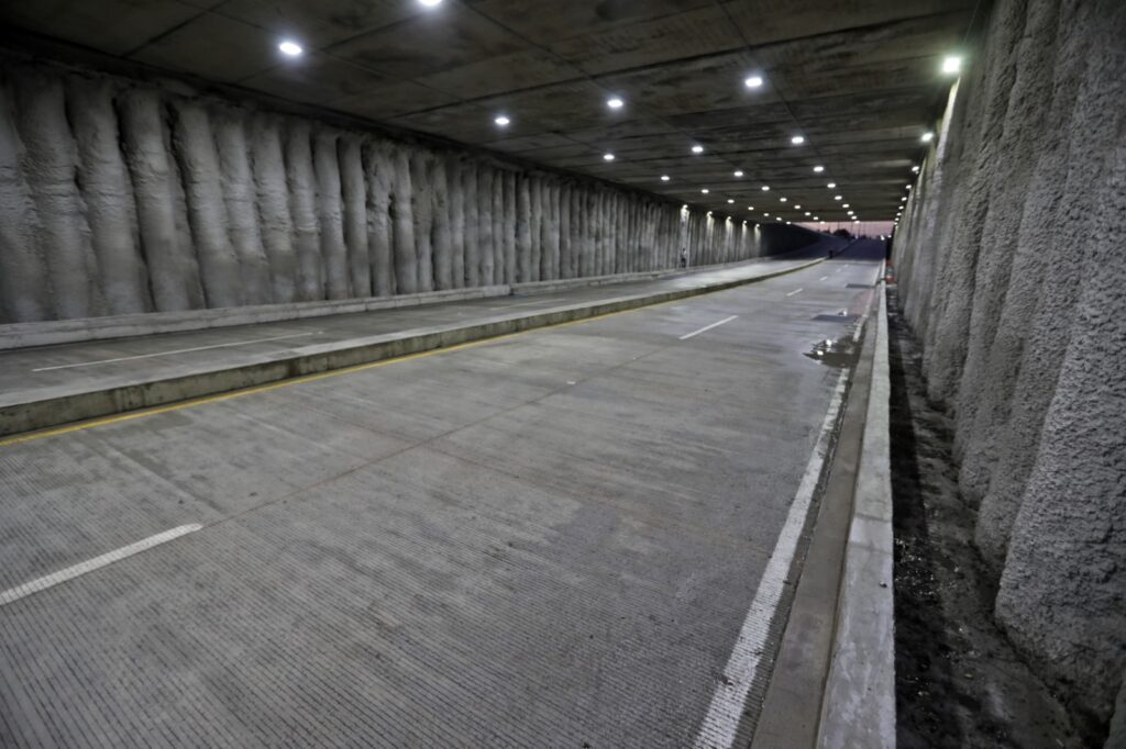 Este proyecto tuvo un costo de más de 219.4 millones de pesos y está compuesto de cuatro carriles de circulación, con camellón central para alumbrado público. La longitud total es de 610 metros (454 m. deprimido y 156 m. de transición) y un ancho de 17 metros, la altura del túnel es de 5.10 metros, además de 329 metros lineales de muros de contención de concreto en entradas y salidas, y 7,718 metros cuadrados de losa de rodamiento de concreto reforzado de 20 cm de espesor. Cárcamo para drenaje pluvial con tres equipos de bombeo y se habilitará jardinera lateral de área verde para incorporar vegetación tipo arbusto y especies trepadoras de muro para conformar un muro verde.