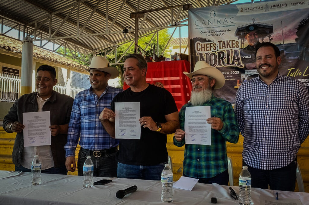 Mazatlán, Sin (RI Noticias). – Durante el evento inaugural de “Chef’s Takes Town” en el Pueblo Señorial de La Noria, el Secretario de Economía de Sinaloa, Ricardo Velarde Cárdenas, firmó un convenio de colaboración entre el Tianguis Gastronómico Dominical y los restaurantes locales, respaldado por la Cámara Nacional de la Industria de Restaurantes y Alimentos Condimentados (Canirac). Este acuerdo busca establecer una coordinación más efectiva y sostenible para el desarrollo económico de la región rural de Mazatlán.