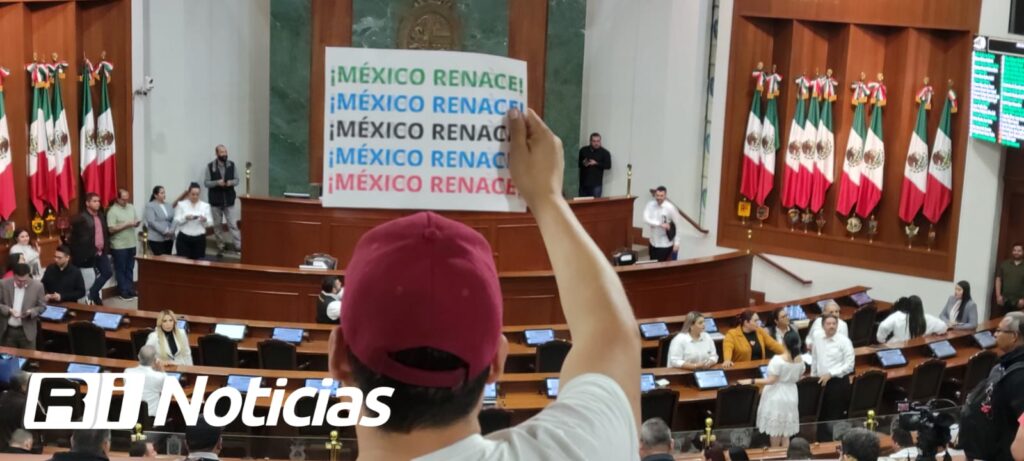 Entre gritos y consignas de los manifestantes, algunos diputados del partido Morena, que se encontraban en el pleno del Congreso, alzaron hojas blancas con la inscripción “Paz y Unidad”, como muestra de apoyo a la causa.