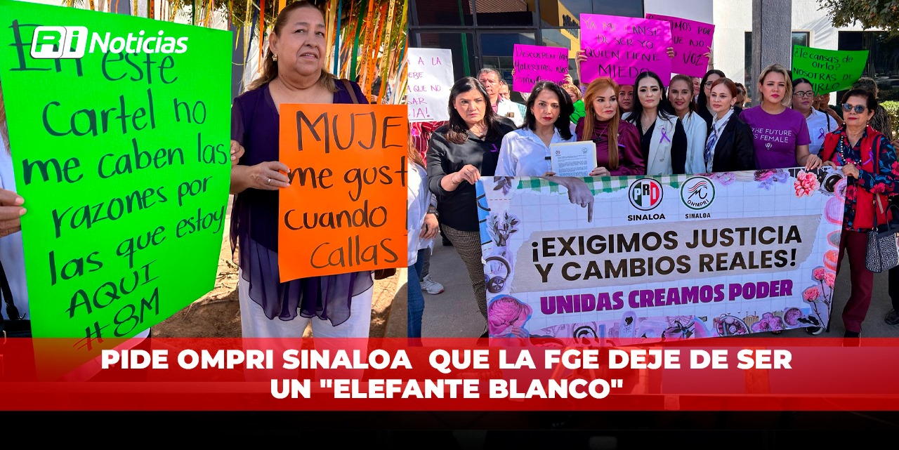 Culiacán, Sin (RI Noticias).- En el marco del Día Internacional de la Mujer, integrantes de Organismo Nacional de Mujeres Priistas (OMPRI) en Sinaloa lideradas por Irma Moreno y la presidenta del PRI en Sinaloa Paola Garate, se manifestaron en la Fiscalía General del Estado para exigir justicia para las mujeres en Sinaloa.