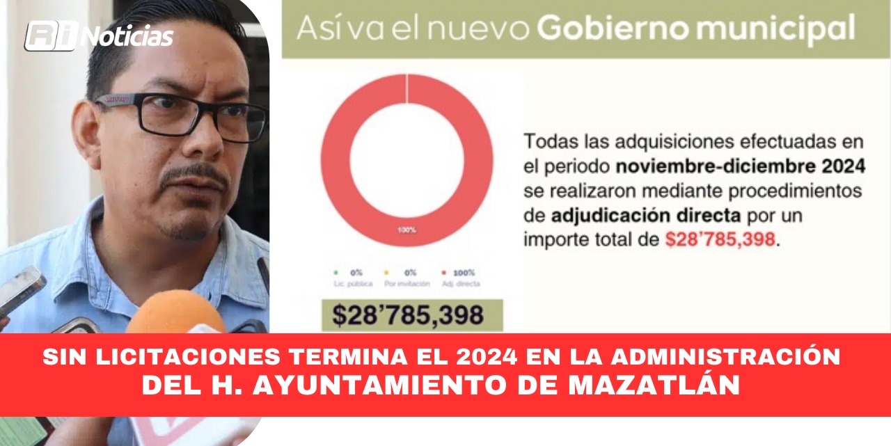 Mazatlán, Sinaloa (RI Noticias).- Gustavo Rojo Navarro director del Observatorio Ciudadano de Mazatlán, señala que la nueva administración del Gobierno Municipal, la cual, preside Estrella Palacios Domínguez, tiene un gran reto para cambiar la tendencia de adjudicación directa, ya que el 2024 cerró sin licitaciones.