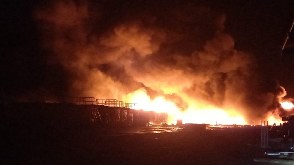 Navarrete Cuevas detalló que en el almacén había 19 tanques de combustible, de los cuales nueve resultaron afectados debido a que el fuego se propagó de uno a otro. “Hubo nueve tanques que estaban incendiados, uno se llevó al otro, de 19 al parecer que visualizo aquí a distancia, pero salieron afectados aproximadamente como nueve (…) afortunadamente no tenemos lesionados”, señaló.