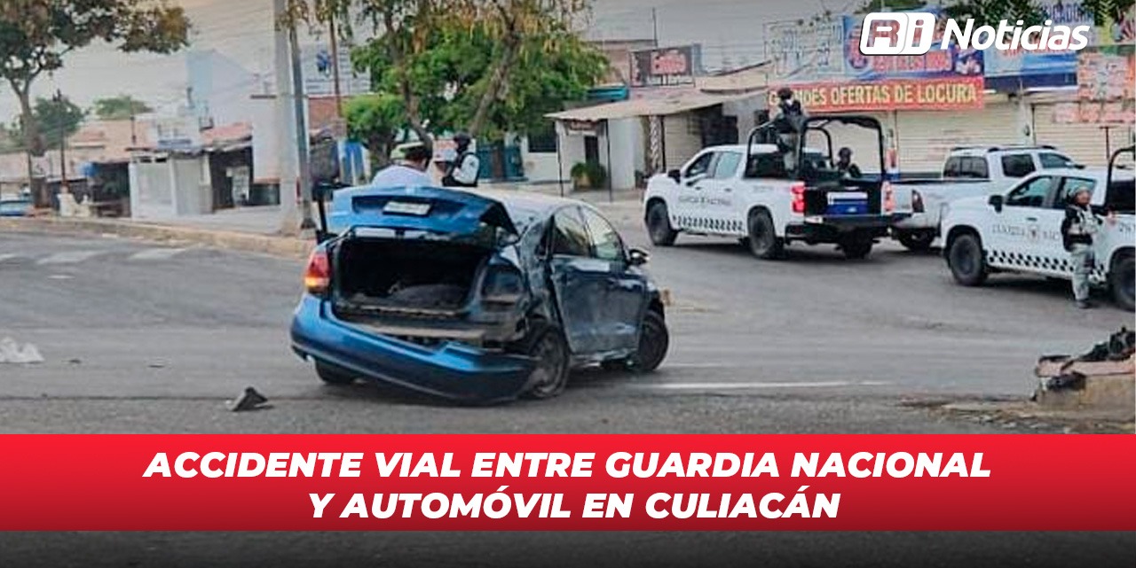 Culiacán, Sinaloa (RI Noticias).- Un accidente de tránsito registrado la mañana de este viernes en la colonia Los Huizaches, al suroriente de Culiacán, dejó daños materiales valuados en varios miles de pesos. El incidente involucró a elementos de la Guardia Nacional y al conductor de un automóvil particular.