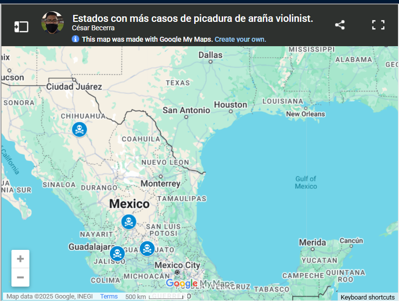 Estos son los estados que registran más picaduras de araña violinista en lo que va del 2025